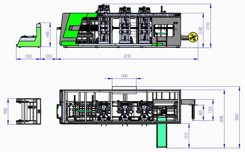 It can make some products which unable to be made in one station thermoforminging machine, like for example: PLA products, plastic lids or containers which has holes, the packing containers (fruit box, egg trays) with body and cover connected etc.